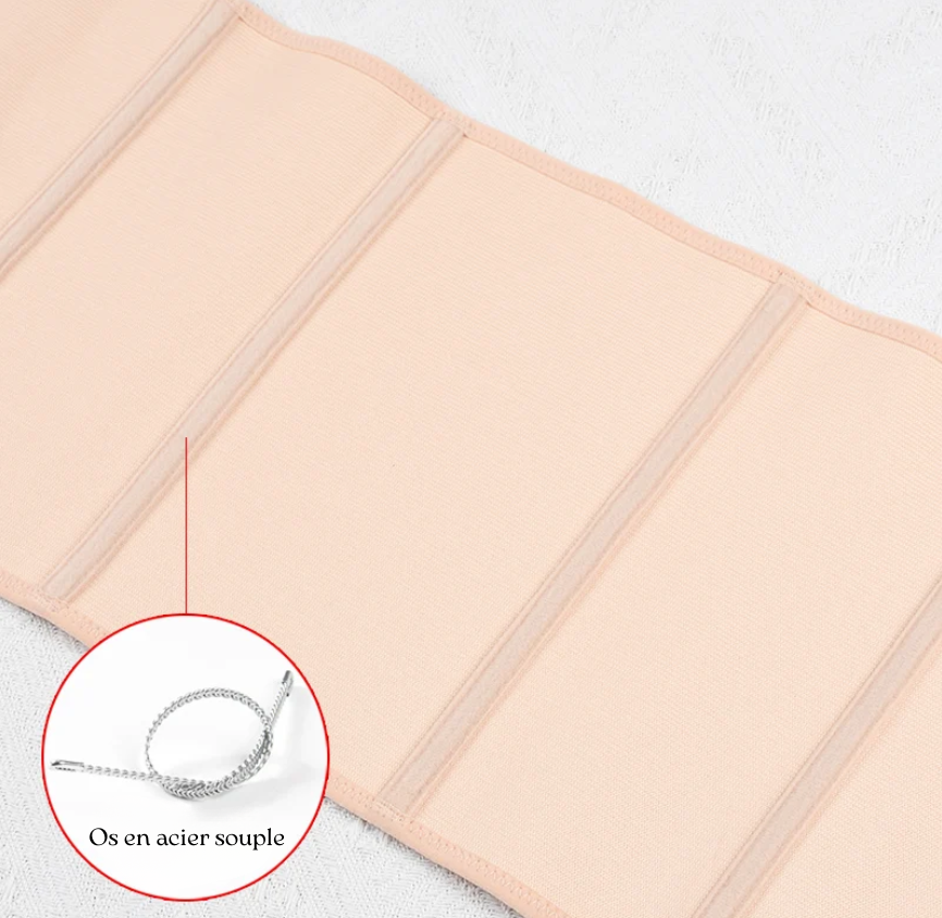 Les os en acier souple intégrés au corset assurent un excellent maintien tout en conservant une grande flexibilité. Ils épousent naturellement les mouvements du corps, aident à soutenir le dos et à améliorer la posture, sans créer de rigidité inconfortable. Cette structure permet de sculpter la silhouette de façon harmonieuse et durable, tout en restant agréable à porter au quotidien.