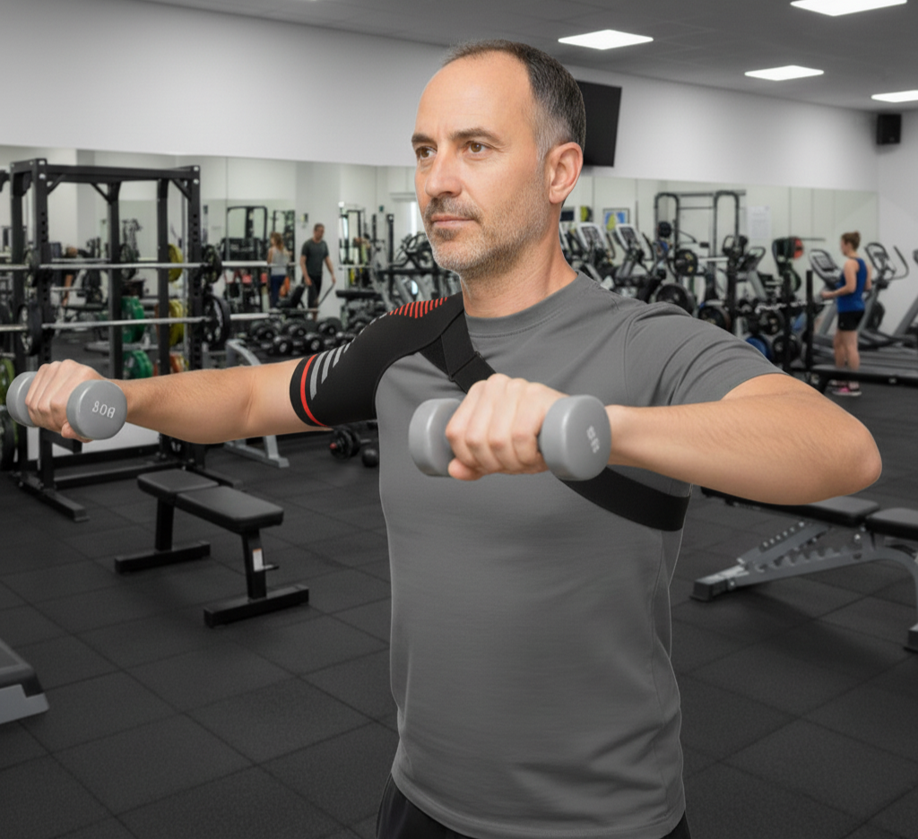 Oui ! Sa matière respirante et sa conception ergonomique permettent de la porter pendant l’entraînement sans gêne. Idéale pour la musculation, le crossfit, le tennis, le basket ou toute autre activité sollicitant l’épaule.